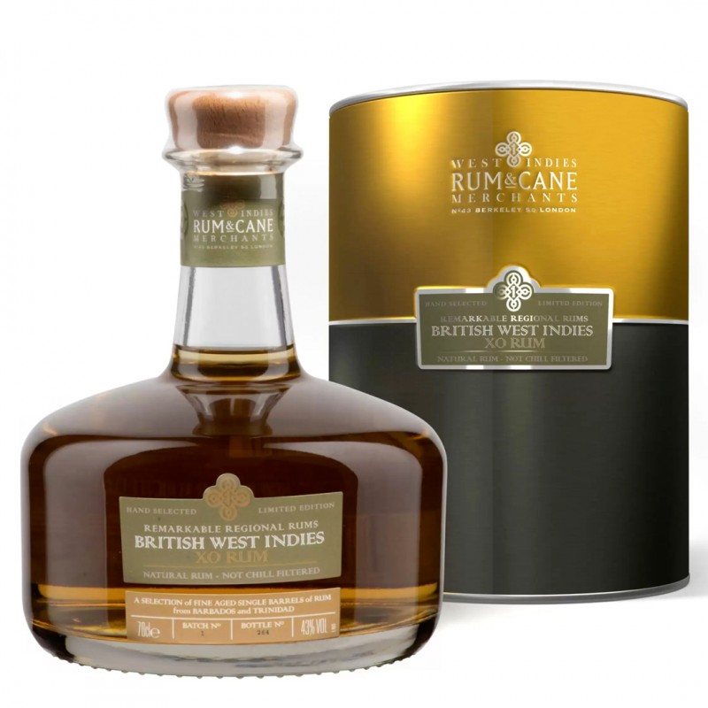 Le Rhum Rum & Cane British West Indies XO est un rhum de mélasse, qui provient d'un assemblage unique de Barbade et de Trinidad. Il est embouteillé par Crucial Drinks, un embouteilleur indépendant britannique, qui sélectionne des fûts rares et authentiques. Ce rhum est distillé dans un alambic à colonne en inox, puis vieilli pendant 6 ans dans des fûts de chêne américain ex-bourbon. Ce rhum a une robe dorée et brillante, et des arômes frais et fruités de canne à sucre, de citron vert et d'agrumes. En bouche, il offre une intensité et une douceur remarquables, avec des notes de vanille, de caramel, de fruits secs, de boisé, de poivre et de réglisse. La finale est longue et équilibrée, avec une touche de cèdre et de végétal. Ce rhum est une édition limitée, avec des bouteilles numérotées, qui exprime toute la richesse du terroir des Antilles britanniques.
